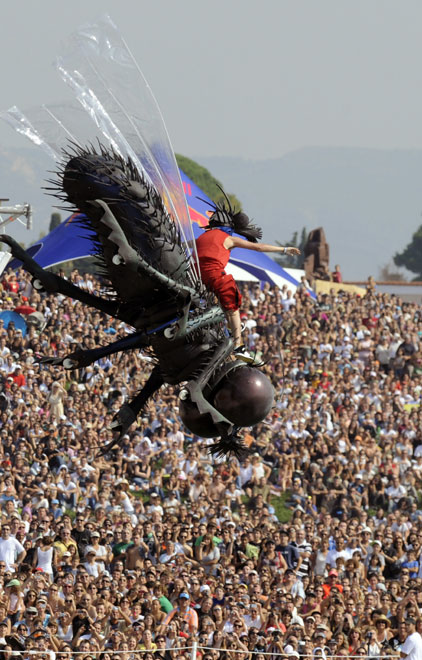 9月27日,法國(guó)馬賽趣味飛行器大賽舉行。比賽規(guī)則簡(jiǎn)單,誰能在落水之前飛得更遠(yuǎn)誰就是冠軍,但參賽選手絞盡腦汁,把自己的飛行器扮成各種古怪摸樣。圖片來源:中國(guó)新聞網(wǎng)