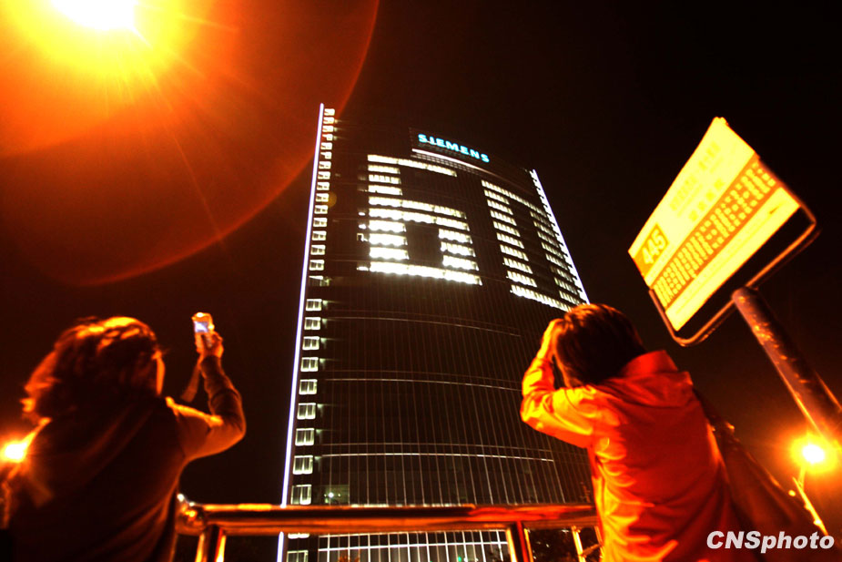 9月28日晚,北京一外企辦公大樓點(diǎn)亮“60”字樣,慶祝新中國(guó)成立60周年。中新社發(fā) 張宇 攝