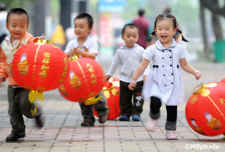 9月27日,合肥市綠苑社區(qū)兒童正手提大紅燈籠奔跑歡呼。當(dāng)日,合肥市大通路街道綠苑社區(qū)開展“掛燈籠迎國(guó)慶”活動(dòng),社區(qū)群眾用燈籠將社區(qū)里裝扮一新,喜迎國(guó)慶節(jié)到來。 中新社發(fā) 解琛 攝