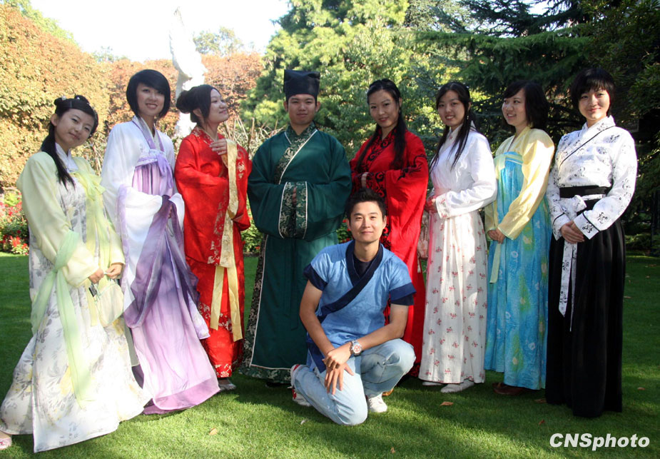 當(dāng)?shù)貢r間9月27日,來自法國、英國、德國和荷蘭的20多名中國留學(xué)生會聚巴黎盧森堡公園,換上嶄新的漢服,然后列隊(duì)向巴黎圣母院、埃菲爾鐵塔、盧浮宮和香榭麗舍大道等法國著名景點(diǎn)出發(fā)。他們以漢服巡游這種特殊方式宣傳中國文化,迎接新中國六十華誕的到來。 中新社發(fā) 吳衛(wèi)中 攝