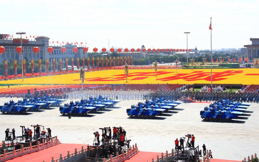國慶60周年閱兵10月1日上午在天安門廣場成功舉行。由人民解放軍、武裝警察部隊和民兵預(yù)備役部隊8000余名官兵組成的受閱方陣接受檢閱。 點擊觀看更多