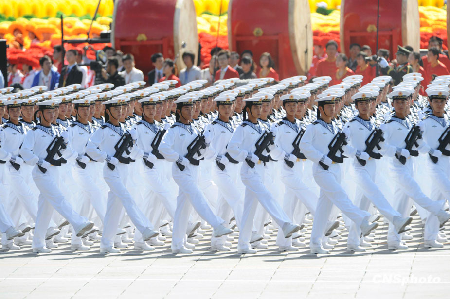 首都各界慶祝中華人民共和國成立60周年大會在北京舉行。這是水兵方隊通過天安門廣場。中新社發(fā) 廖攀 攝