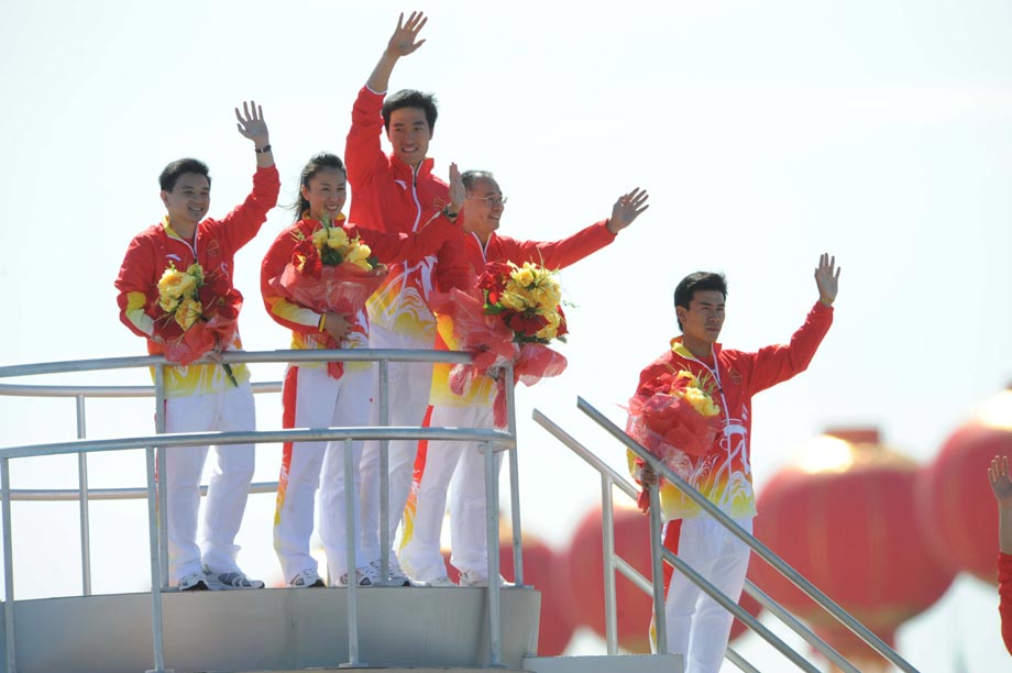 劉翔李寧亮相彩車