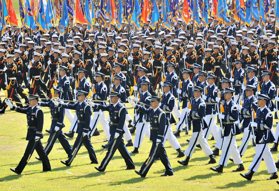 10月1日,韓國(guó)建軍61周年慶祝活動(dòng)在忠清南道雞龍臺(tái)舉行。