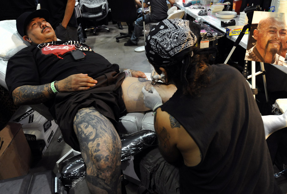 10月9日,人體紋身藝術博覽會在洛杉磯會議中心開幕,為期3天的活動吸引了300多名美國當?shù)睾蛧H紋身藝術家參與。圖片來源:中國新聞網