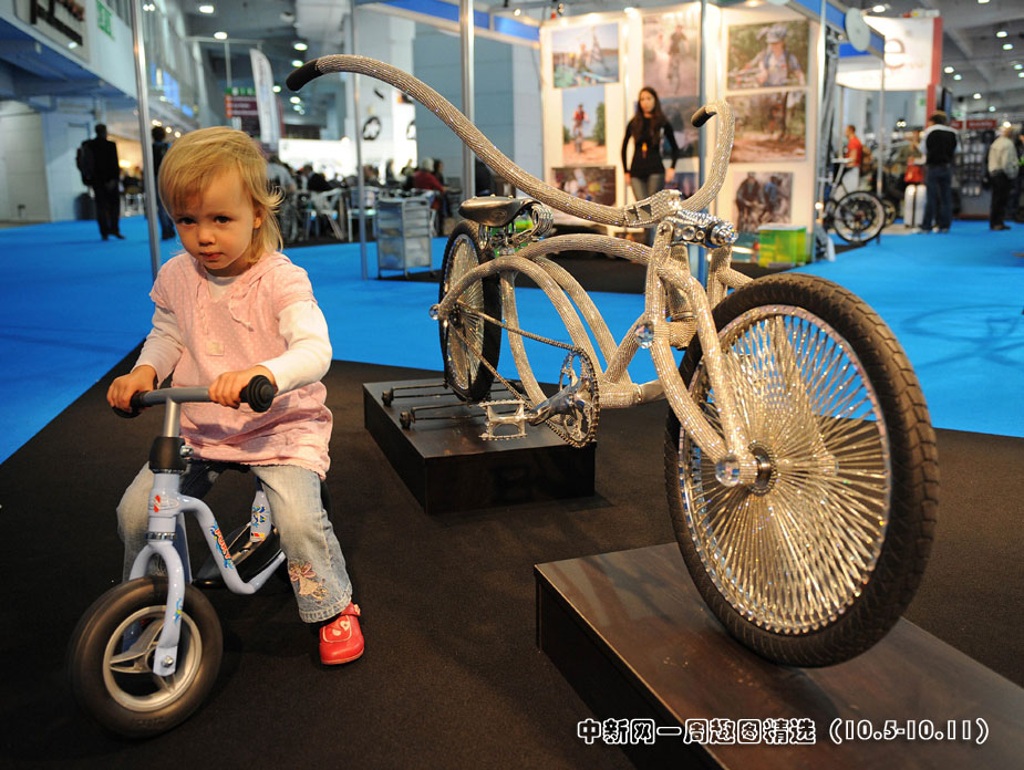 10月8日,2009自行車展在倫敦市中心開幕,超過11萬顆施華洛世奇水晶覆蓋的自行車成為有史以來最昂貴的自行車,該車由英國人本·威爾遜設(shè)計制造。來源:中國新聞網(wǎng)