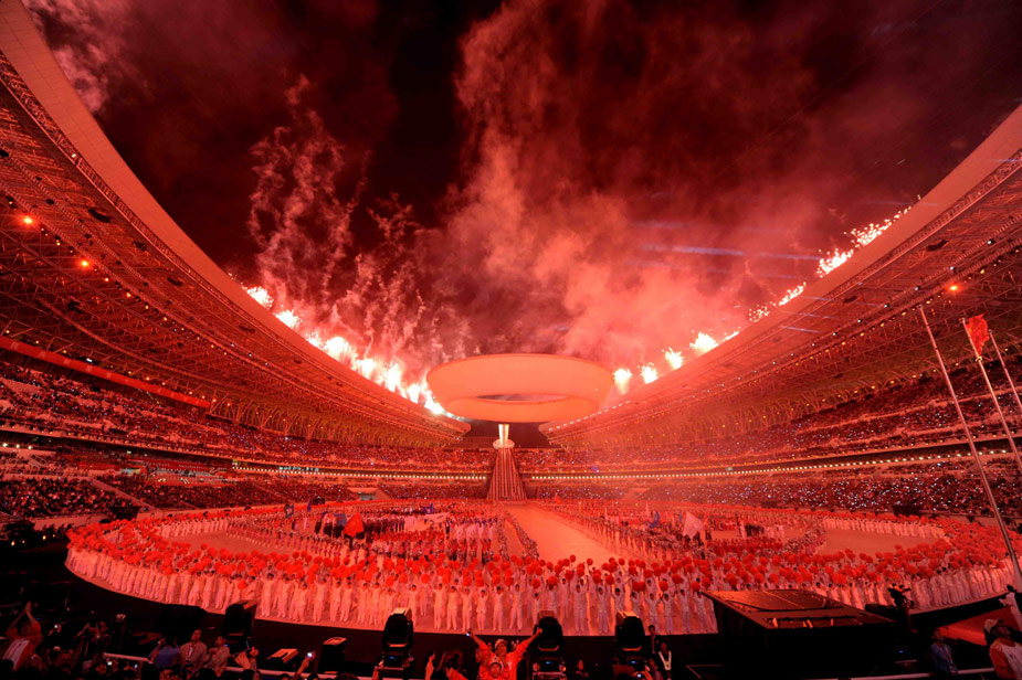 十月十六日晚,中華人民共和國第十一屆運動會在山東濟南奧體中心隆重開幕。中新社發(fā) 陳文 攝