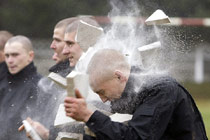 10月16日,來自奧地利的藝術家威利·多勒帶著他的城市空間人體藝術團隊,在倫敦街頭進行藝術表演。圖片來源:中國新聞網(wǎng)