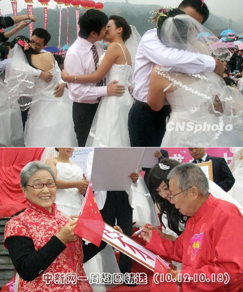 10月12日,享有“萬里長江第一城”美譽的四川省宜賓市在長江、金沙江、岷江接合部舉行“盛世中華”集體婚典。圖片來源:中國新聞網(wǎng)