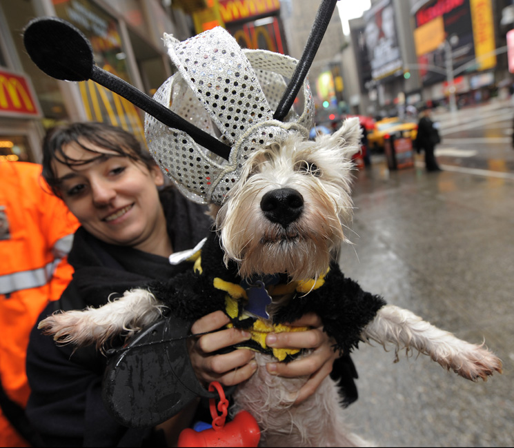 10月18日,在美國紐約時報廣場,眾多小狗在此參加第5屆年度狗狗化妝舞會表演。主辦方稱,這一活動的目的在于喚起人們對無家可歸和遭遺棄動物的關(guān)注。