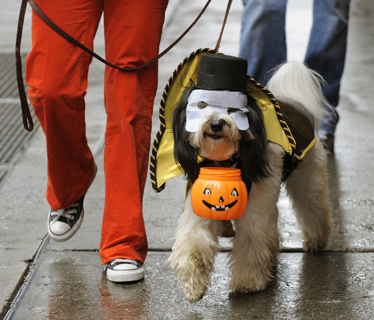 10月18日,在美國紐約時報廣場,眾多小狗在此參加第5屆年度狗狗化妝舞會表演。主辦方稱,這一活動的目的在于喚起人們對無家可歸和遭遺棄動物的關(guān)注。