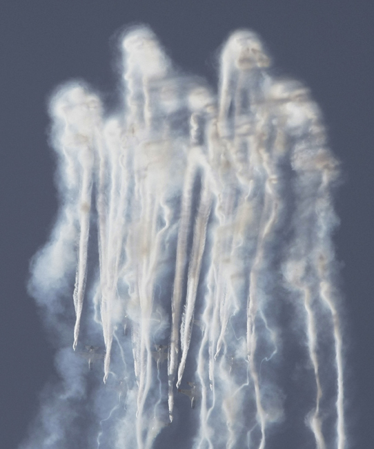 10月20日,韓國黑鷹特技飛行表演隊在2009首爾國際航空航天與國防展上進行精彩的特技飛行表演。