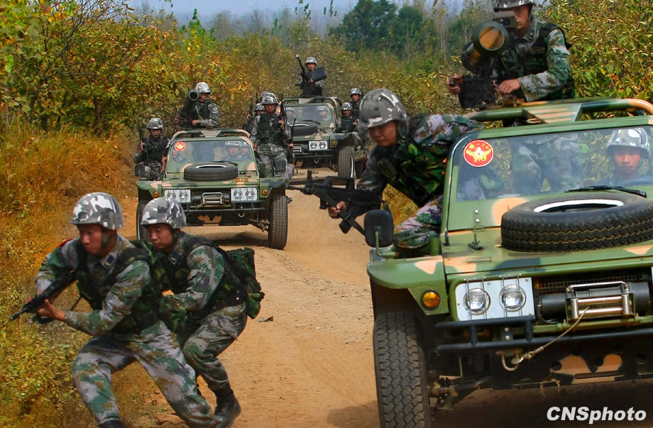 解放軍濟(jì)南軍區(qū)“前鋒-2009A”軍事演習(xí),將于10月21日在某合同戰(zhàn)術(shù)訓(xùn)練基地舉行,圖為即將參加演習(xí)的空降兵部隊(duì)10月20日在進(jìn)行針對(duì)性訓(xùn)練。這次演習(xí)主要是由兵力兵器數(shù)量規(guī)模向信息火力效能聚優(yōu)轉(zhuǎn)變、指揮的重心由主攻方向上的重點(diǎn)突破向作戰(zhàn)關(guān)節(jié)要害的體系毀癱轉(zhuǎn)變、火力的運(yùn)用由概略粗放決策向科學(xué)精細(xì)籌劃轉(zhuǎn)變、協(xié)同的重點(diǎn)由地面步坦行動(dòng)向陸空火力協(xié)調(diào)轉(zhuǎn)變、行動(dòng)的控制由時(shí)間位置推進(jìn)量向效果態(tài)勢達(dá)成度轉(zhuǎn)變、作戰(zhàn)的目的由殲敵奪地向控要制權(quán)轉(zhuǎn)變。 中新社發(fā) 宋吉河 攝