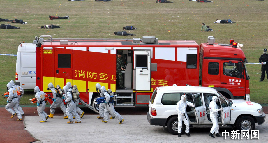 23日,推進(jìn)“平安重慶”建設(shè)突發(fā)事件應(yīng)急演練在該市渝中區(qū)大田灣體育場(chǎng)舉行,重慶各警種突精銳力量重裝登場(chǎng),將各類事件一一化解。