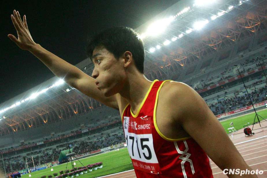 10月24日晚,全運(yùn)會(huì)110米欄預(yù)賽在濟(jì)南奧體中心舉行,“飛人”劉翔以13秒75成績(jī)輕松晉級(jí)決賽。來源:中國(guó)新聞網(wǎng)