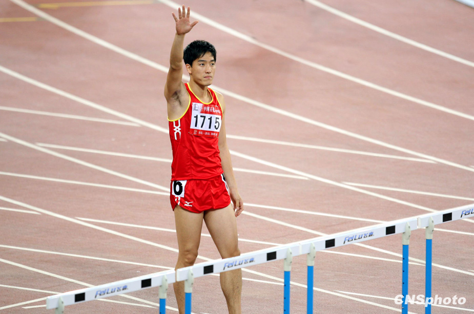 10月24日晚,全運會110米欄預賽在濟南奧體中心舉行,“飛人”劉翔以13秒75成績輕松晉級決賽。來源:中國新聞網(wǎng)