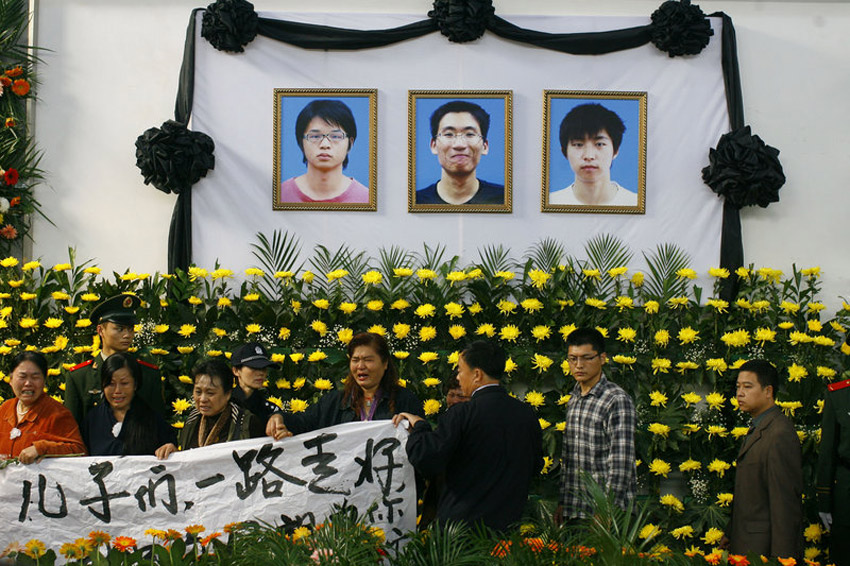 10月28日上午,湖北荊州市在市殯儀館舉行隆重追悼大會,悼念陳及時、何東旭、方招三位舍己救人大學(xué)生。數(shù)萬群眾趕到追悼會現(xiàn)場,手捧菊花為英雄道別。