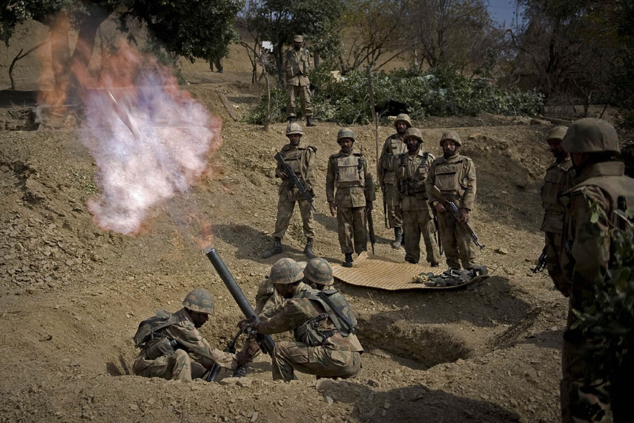 10月29日,巴基斯坦軍方稱在過去24小時內(nèi),巴安全部隊在南瓦濟里斯坦部落地區(qū)繼續(xù)向塔利班“老巢”挺進,共打死11名塔利班武裝分子。圖為巴基斯坦安全部隊向塔利班“老巢”開火。