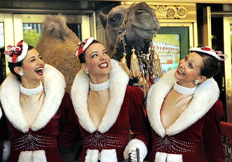 10月29日,火箭女郎舞蹈團(tuán)的姑娘們?cè)诿绹?guó)紐約廣播城音樂(lè)廳與眾多動(dòng)物明星合影,準(zhǔn)備在圣誕秀上亮相。圖片來(lái)源:中國(guó)新聞網(wǎng)
