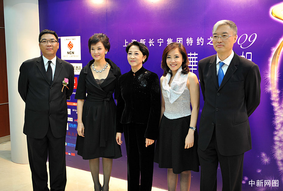 圖為大賽評委(左起)電影導演關錦鵬、歌唱家宋祖英、中央芭蕾舞團團長趙汝蘅、臺灣時事評論員尹乃菁及香港作家李純恩。