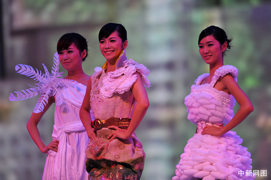 10月31日晚,“2009中華小姐環(huán)球大賽”總決賽上,12名入圍總決賽的佳麗身著各式服裝展現(xiàn)曼妙身姿,此外大賽還設(shè)計(jì)了一套“廢品服裝”呼吁環(huán)境保護(hù)。中新網(wǎng)記者 金碩 攝