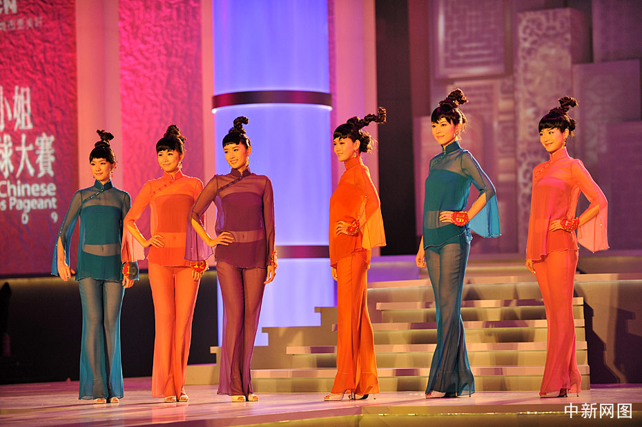 10月31日晚,“2009中華小姐環(huán)球大賽”總決賽上,12名入圍總決賽的佳麗身著各式服裝展現(xiàn)曼妙身姿,此外大賽還設(shè)計了一套“廢品服裝”呼吁環(huán)境保護(hù)。中新網(wǎng)記者 金碩 攝