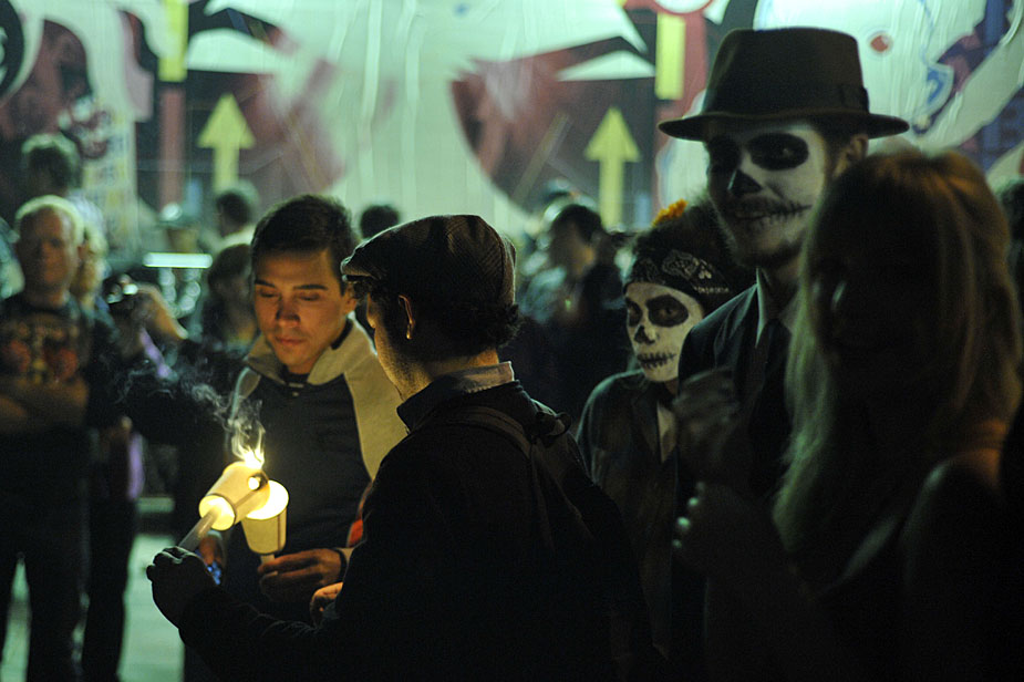 11月2日,美國舊金山居民扮成鬼怪模樣慶!巴鲮`節(jié)”!巴鲮`節(jié)”是拉美地區(qū)的傳統(tǒng)節(jié)日,類似于中國的清明節(jié)。來源:中國新聞網(wǎng)