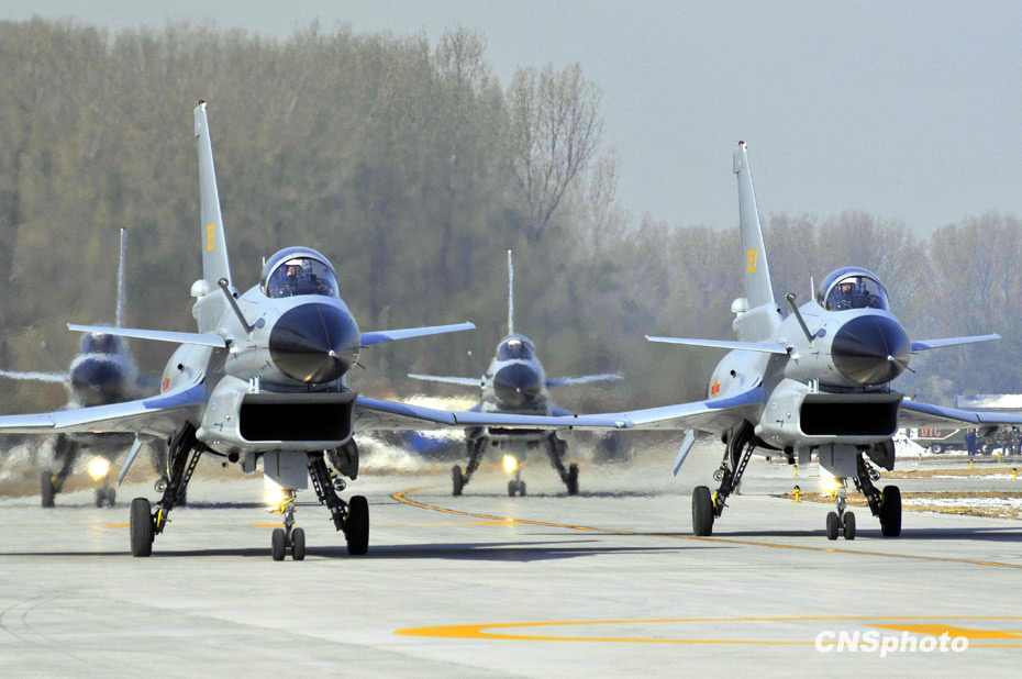 圖為殲十戰(zhàn)機(jī)參加預(yù)演。中新社發(fā) 潘旭臨 攝