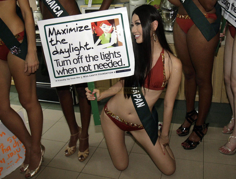 2009世界綠色環(huán)保大使小姐決賽在菲律賓進行,來自世界各地的90名佳麗參與角逐。世界綠色環(huán)保大使(地球小姐)評選,是全世界唯一以“綠色環(huán)!睘橹黝}注冊的國際頂級權威大賽,由菲律賓總統(tǒng)阿羅約創(chuàng)始。圖片來源:中國新聞網(wǎng)