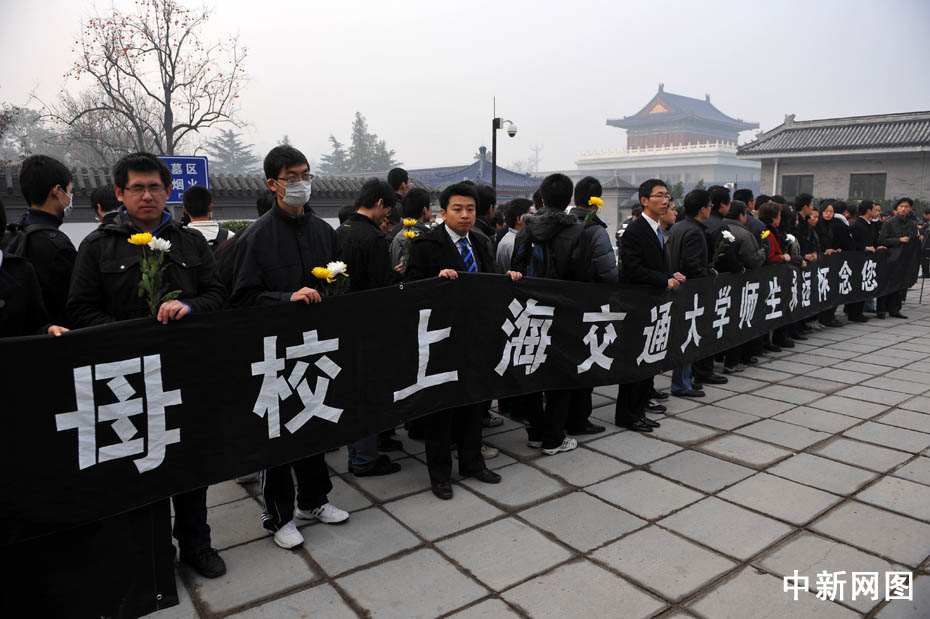 11月6日,“中國航天之父”錢學(xué)森的追悼會在北京八寶山舉行。各界民眾自發(fā)趕來為錢老送行。圖片來源:中國新聞網(wǎng)