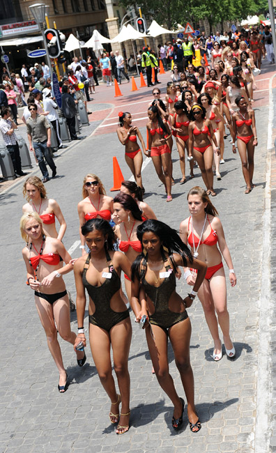 11月7日,南非的約翰內(nèi)斯堡正值夏天,將近300位身穿比基尼泳裝的女郎齊聚游行。希望借此打破最大規(guī)模比基尼游行吉尼斯紀錄。