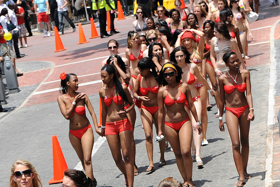 11月7日,南非女性著比基尼沿著梅爾羅斯門大道游行了1690米,在打破吉尼斯世界記錄的同時提醒婦女提高防范乳腺癌的意識。圖片來源:中國新聞網(wǎng)