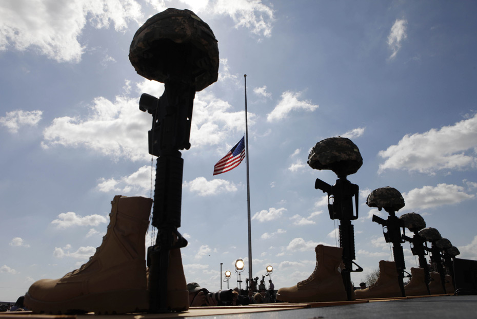 2009年11月10日,美國德克薩斯州胡德堡陸軍基地舉行儀式悼念槍擊案遇難者。 圖片來源:中國新聞網(wǎng)