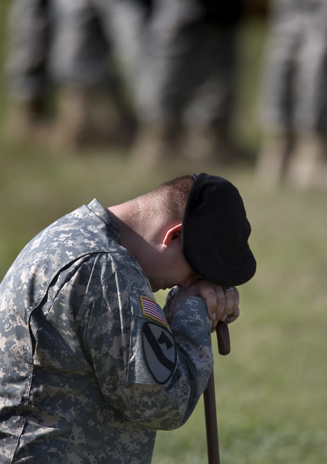 2009年11月10日,在美國得克薩斯州胡德堡陸軍基地,士兵在悼念儀式上哭泣。當日,美國德克薩斯州胡德堡陸軍基地舉行儀式悼念槍擊案遇難者。 圖片來源:中國新聞網(wǎng)