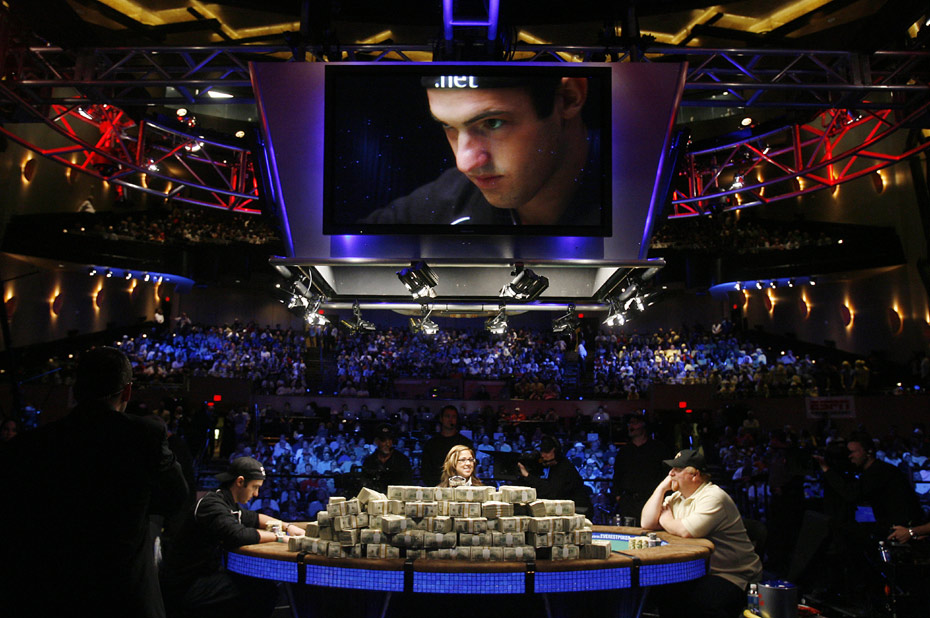 世界撲克牌大賽決賽選手都是從7月初賽時(shí)選出的精英,當(dāng)時(shí)有6494名世界各地?fù)淇伺聘呤謪⒓。?lái)自美國(guó)密執(zhí)根州的21歲小伙子喬-卡德贏得了這場(chǎng)“賭神之戰(zhàn)”,。同時(shí),他也成為這個(gè)有40年歷史的大賽中最年輕的冠軍?ǖ碌膶(duì)手是伐木工人達(dá)文·穆?tīng)枺ǖ聞t是職業(yè)撲克高手。兩人在當(dāng)?shù)貢r(shí)間周二凌晨一點(diǎn)一決雌雄。