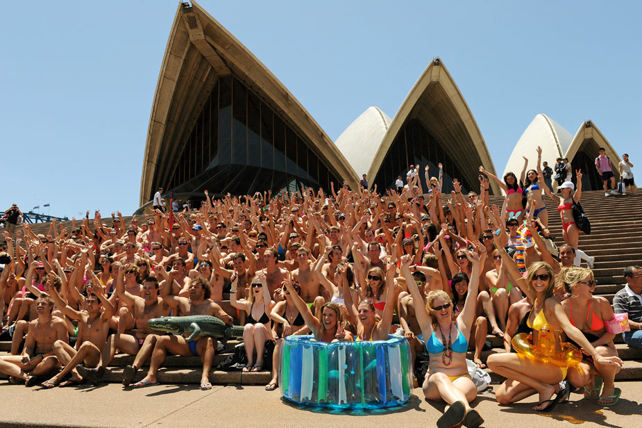 11月12日,約1000人身穿泳裝在悉尼街頭游行,欲打破287人近日在南非創(chuàng)造的最大規(guī)模泳裝游行的世界紀(jì)錄。