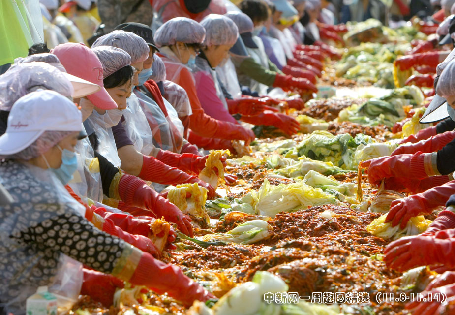 11月9日,約2700名韓國志愿者在首爾一所學校的操場上制作泡菜。>>點擊觀看詳細內(nèi)容