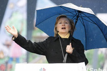 希拉里雨中考察美國館