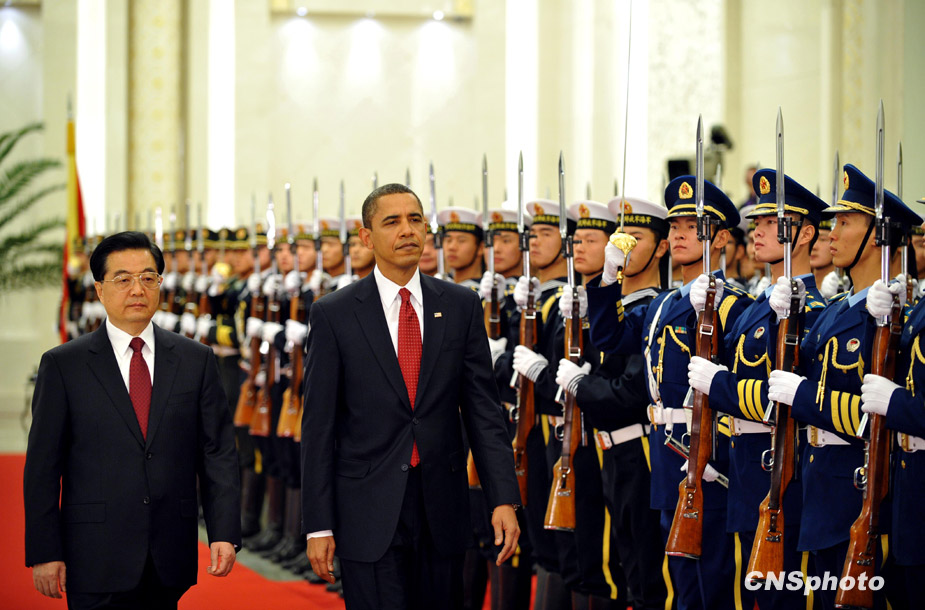 中國國家主席胡錦濤11月17日上午約9點(diǎn)50分在人民大會堂北大廳舉行儀式,歡迎美國第44任總統(tǒng)奧巴馬對中國進(jìn)行國事訪問。中新社記者 廖攀 攝