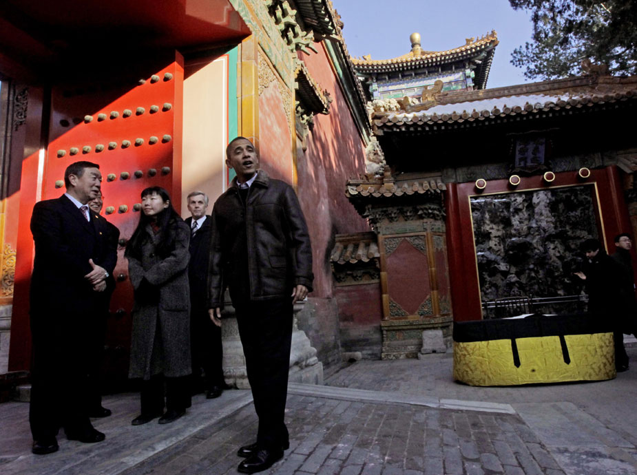 11月17日,正在中國進行國事訪問的美國總統(tǒng)奧巴馬一行參觀北京故宮。