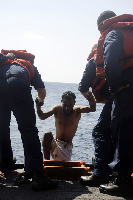 11月17日,亞丁灣,3名漁民抱著木板在海面上漂流3天后獲救。據(jù)悉,他們遭遇了十幾名名疑似海盜的劫持,海盜們讓其選擇或跳海逃生或被殺死。來源:中國新聞網(wǎng)