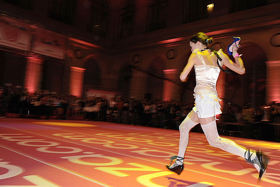 11月20日,法國巴黎舉行了有趣的室內(nèi)高跟鞋賽跑比賽,總共32支隊(duì)伍96人一爭高下。圖片來源:中國新聞網(wǎng)