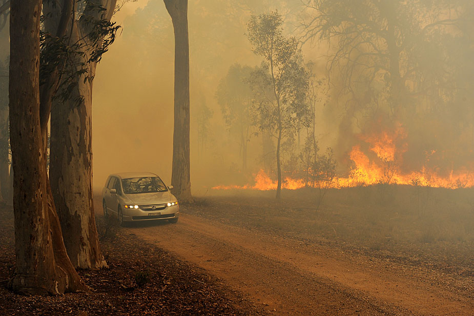 11月22日,澳大利亞東部悉尼西北部地區(qū)因高溫發(fā)生森林大火,當?shù)鼐用癖黄瘸冯x。圖片來源:中國新聞網(wǎng)