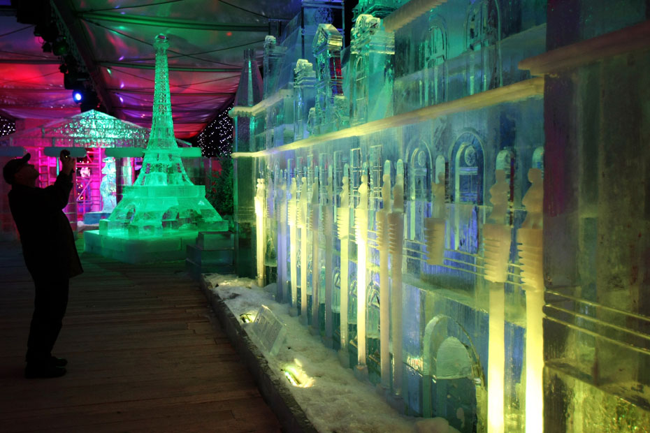 11月23日,為期一個月的“冰之魔術”藝術展在法國巴黎香榭麗舍開幕,16位藝術家利用440噸冰雕刻出精美的巴黎地標建筑和著名藝術家羅丹的“思想者”雕塑。圖片來源:中國新聞網(wǎng)