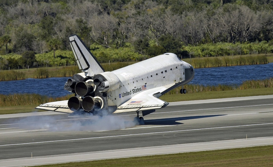 美國(guó)“阿特蘭蒂斯”號(hào)航天飛機(jī)27日平安降落在佛羅里達(dá)州肯尼迪航天中心,結(jié)束了為期11天的國(guó)際空間站之旅。圖片來(lái)源:中國(guó)新聞網(wǎng)