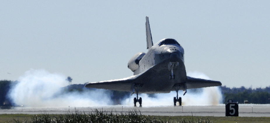 美國“阿特蘭蒂斯”號(hào)航天飛機(jī)27日平安降落在佛羅里達(dá)州肯尼迪航天中心,結(jié)束了為期11天的國際空間站之旅。圖片來源:中國新聞網(wǎng)