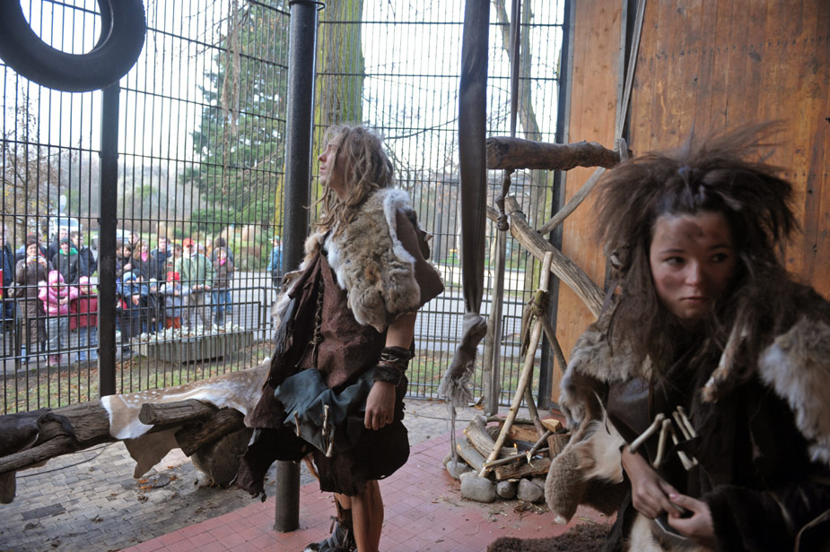 11月27日,波蘭首都華沙動物園里,一男一女兩個(gè)志愿者扮成原始洞穴人向參觀者進(jìn)行展示。該動物園想通過這項(xiàng)為期一周的活動,提醒參觀者注意人類也是動物界的一部分。