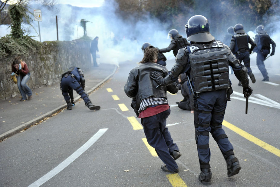 11月28日,在瑞士日內(nèi)瓦發(fā)生的抗議世界貿(mào)易組織的游行活動引發(fā)暴力沖突,部分游行者點燃汽車、砸毀商店并與防暴警察發(fā)生沖突。