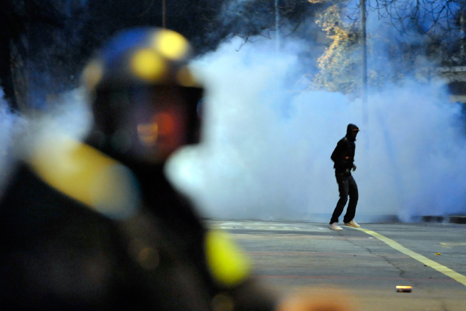 11月28日,在瑞士日內(nèi)瓦發(fā)生的抗議世界貿(mào)易組織的游行活動(dòng)引發(fā)暴力沖突,部分游行者點(diǎn)燃汽車、砸毀商店并與防暴警察發(fā)生沖突。