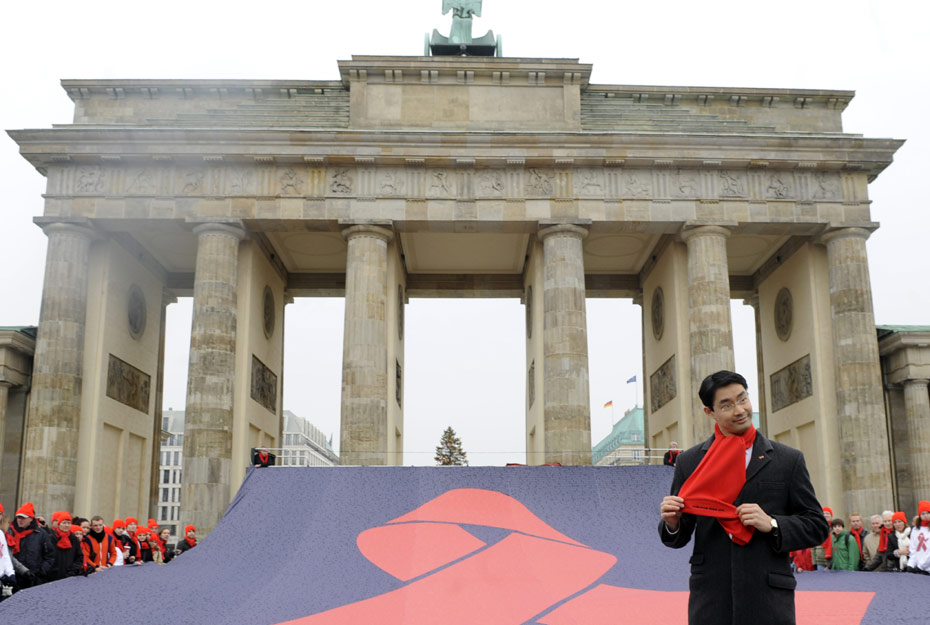 11月30日,德國衛(wèi)生部長在為艾滋病日做宣傳。12月1日是世界艾滋病日,2009年世界艾滋病日的主題是“普遍可及和人權(quán)”。世界各地民眾組織各種活動(dòng)呼吁人們關(guān)注艾滋病。圖片來源:中國新聞網(wǎng)